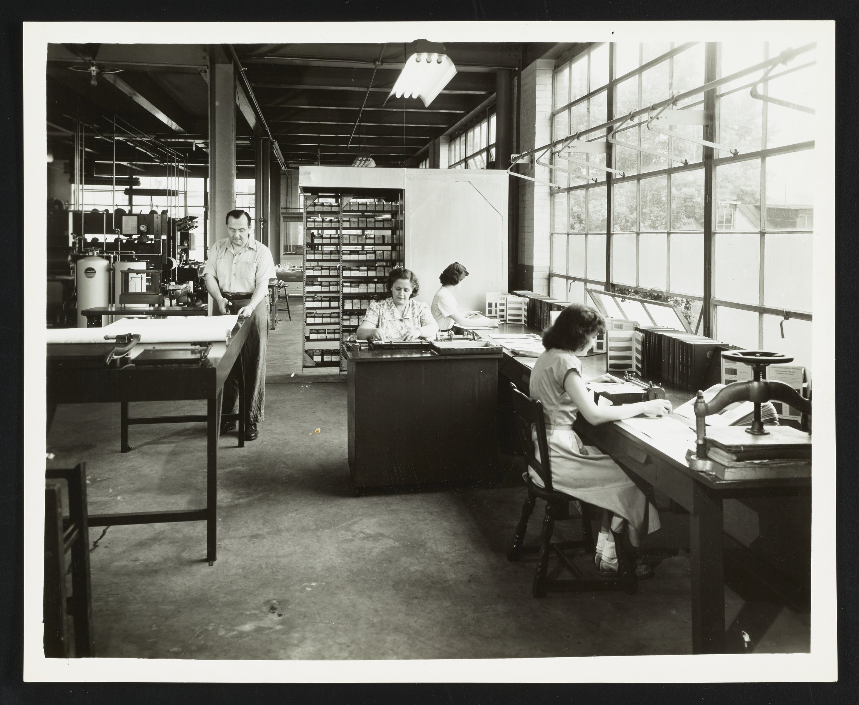 Tenschert Commercial Photo Studio. “Printing Department at the Althouse Customer Service Laboratory,” 1951. Photographs from the Records of the Althouse, Bates, and Crompton Chemical Companies, Box 1. Science History Institute. Philadelphia. https://digital.sciencehistory.org/works/z316q162x.