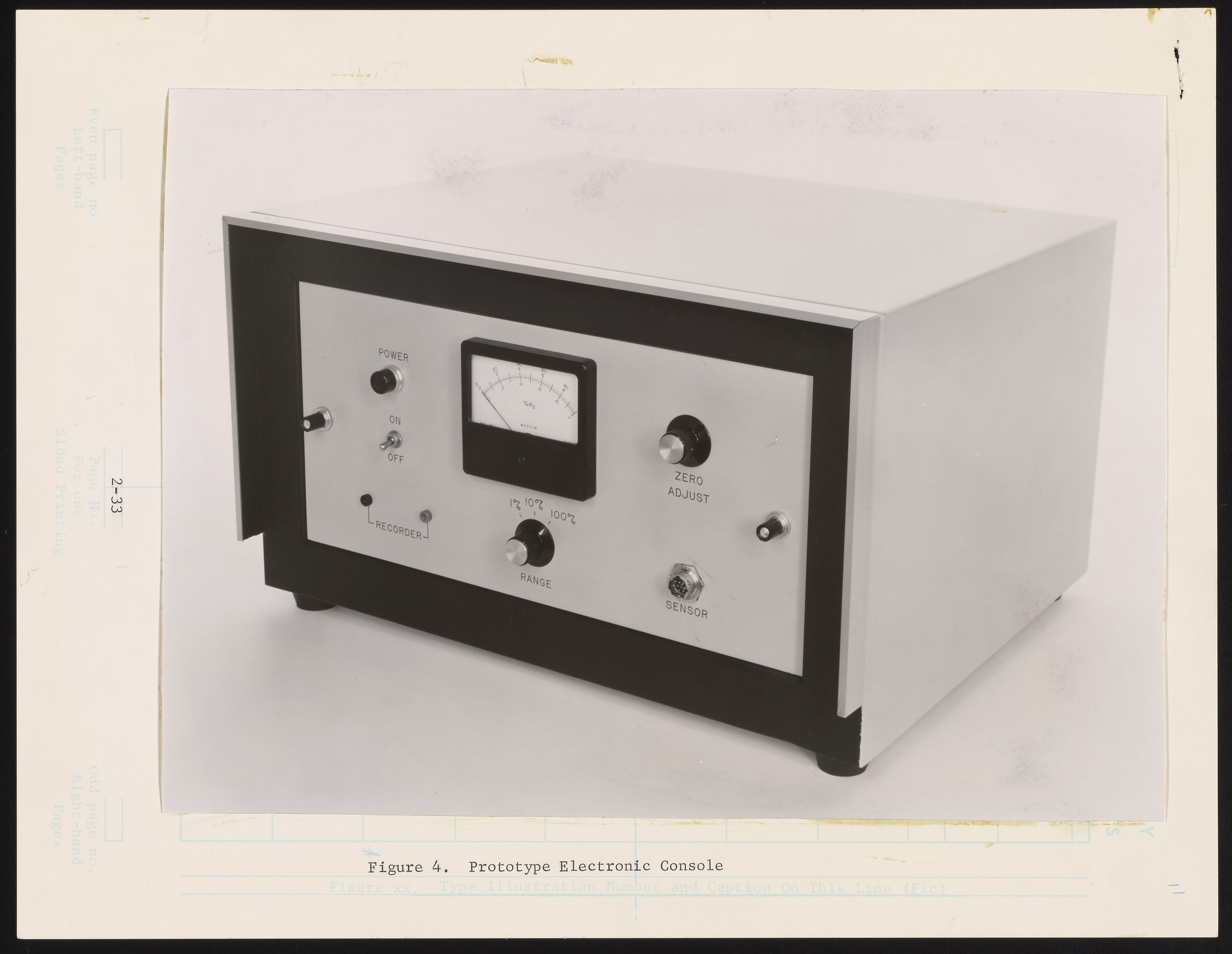 This prototype polarographic hydrogen detector was developed by Beckman Instruments' Space Engineering Group (SEG) in 1963 for use in NASA's Saturn Rocket Program. This instrument measured the partial pressure of hydrogen in a gaseous mixture without depending on oxygen for the electro-chemical reaction. A different instrument -- an eight channel Hydrogen Monitor and Alarm System -- was ultimately created from this prototype and used for monitoring the Saturn rocket during fueling and launch.