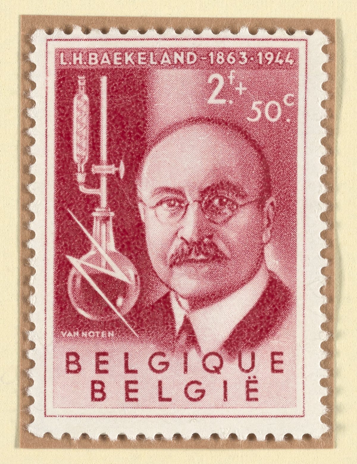 Noten, Jean Van. “Belgian Semipostal Stamp Commemorating Leo H. Baekeland.” Belgium, October 9, 1955. Witco Stamp Collection, Box 1. Science History Institute. Philadelphia. https://digital.sciencehistory.org/works/z890rt32g.