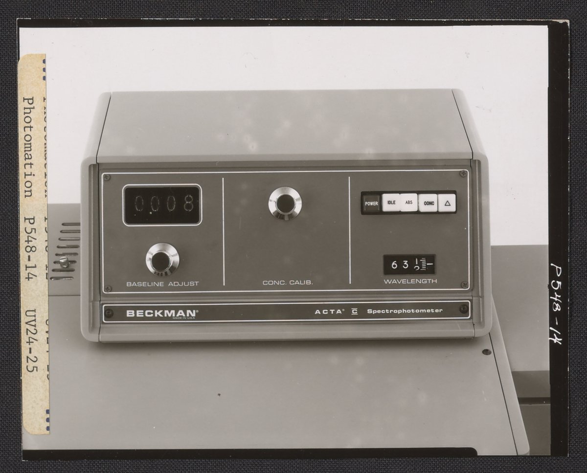 Photomation. “Beckman ACTA C Spectrophotometer,” n.d. Beckman Historical Collection, Box 86. Science History Institute. Philadelphia. https://digital.sciencehistory.org/works/z890rt63g.