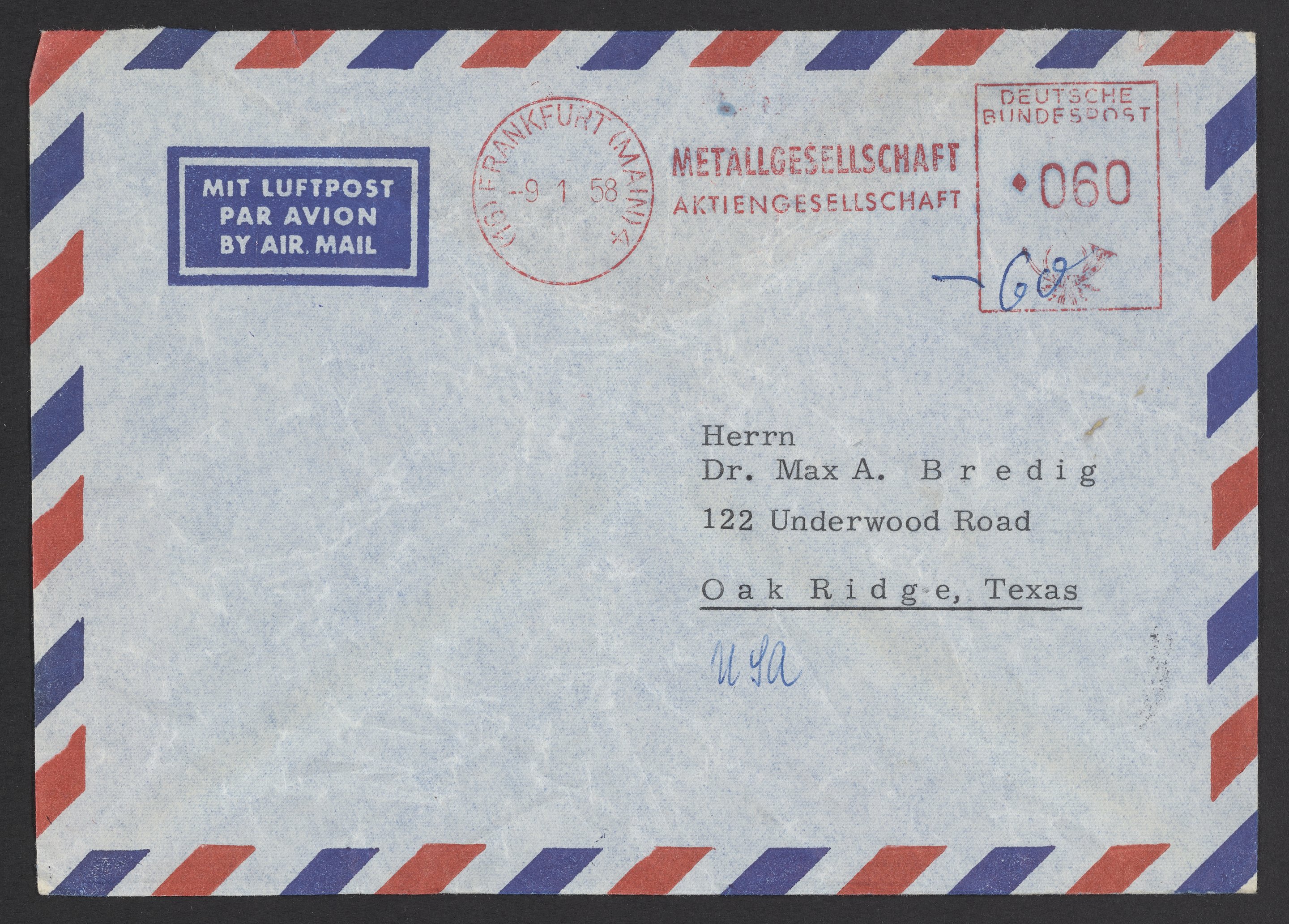 Envelopes addressed to Max Bredig from Johannes Jaenicke