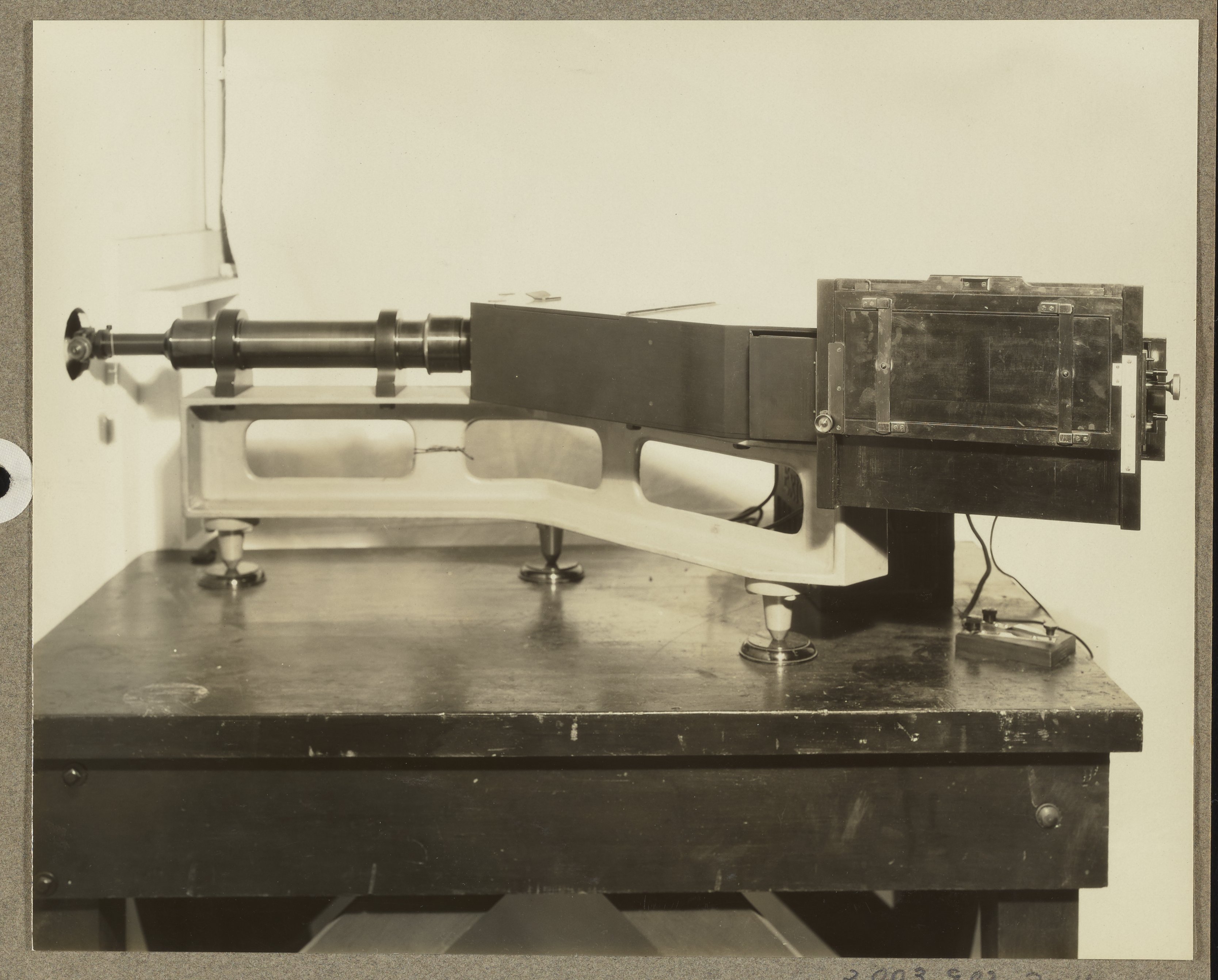 General view of an apparatus used for the spectroscopic study of the mechanism of nitrogen fixation in the electric arc at the U.S. Department of Agriculture's Fixed Nitrogen Research Laboratory located in Washington, D.C. In the early 20th century, the arc process, in which electric generators are used to combine nitrogen and oxygen in the high temperatures of an electric arc, was one of several processes used to "fix" or chemically combine nitrogen with other elements to form more-reactive nitrogen compounds such as ammonia, nitrates, or nitrites.