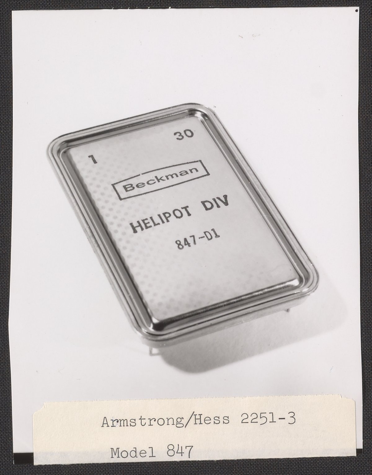 Armstrong & Hess. “Helipot Analog to Digital Converter Model 847,” 1950–1969. Beckman Historical Collection, Box 85. Science History Institute. Philadelphia. https://digital.sciencehistory.org/works/zc77sq38n.
