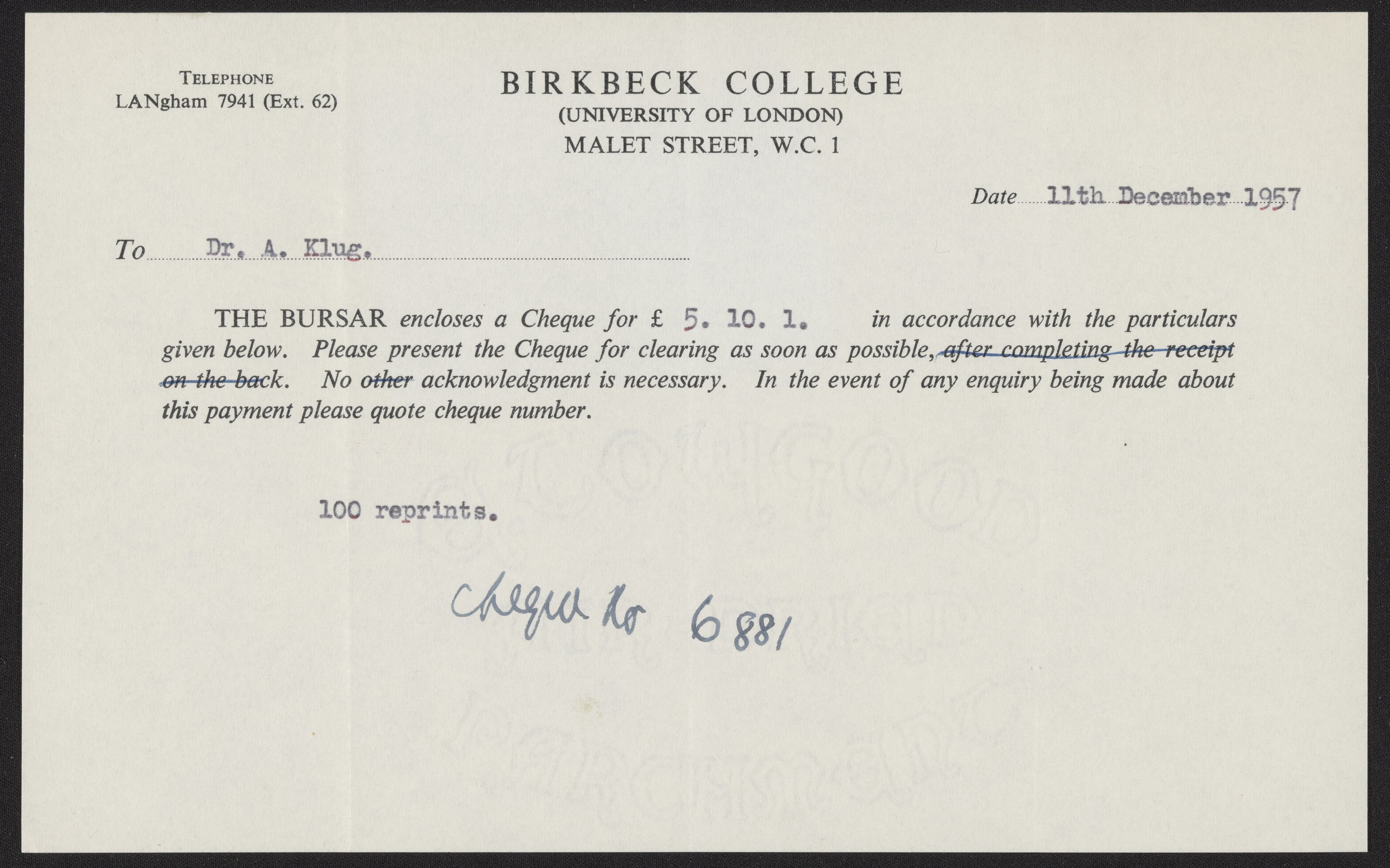 Letter from A. J. Caraffi to Aaron Klug, December 11, 1957