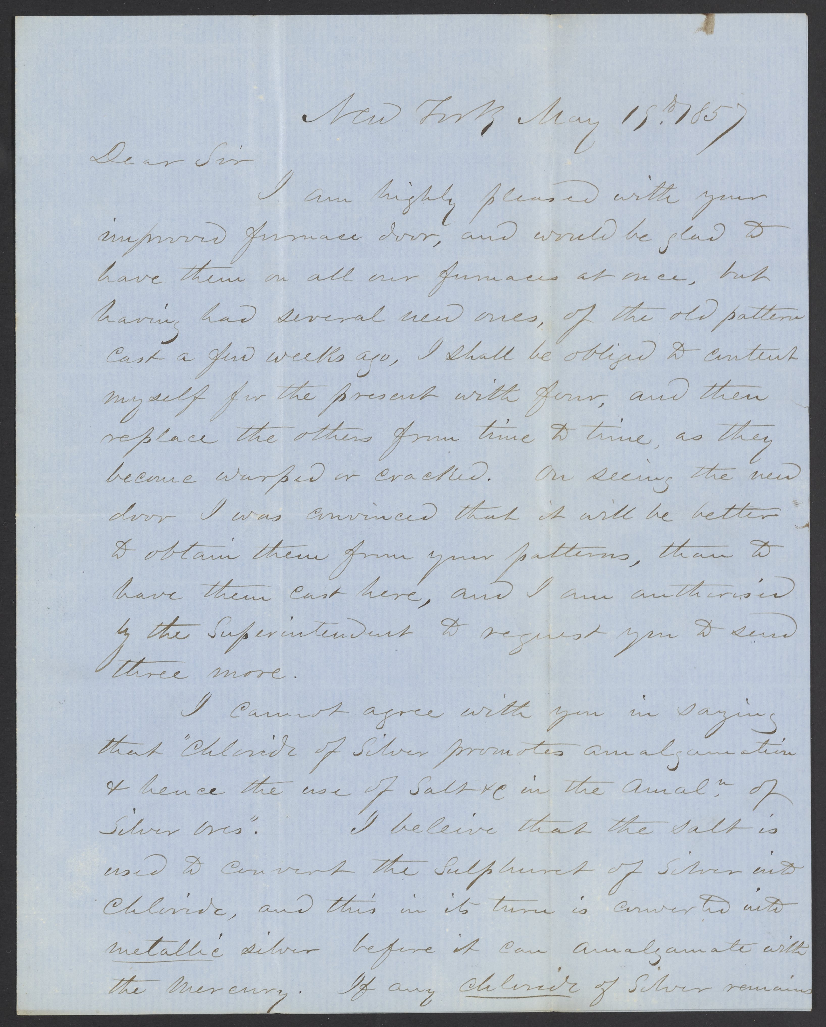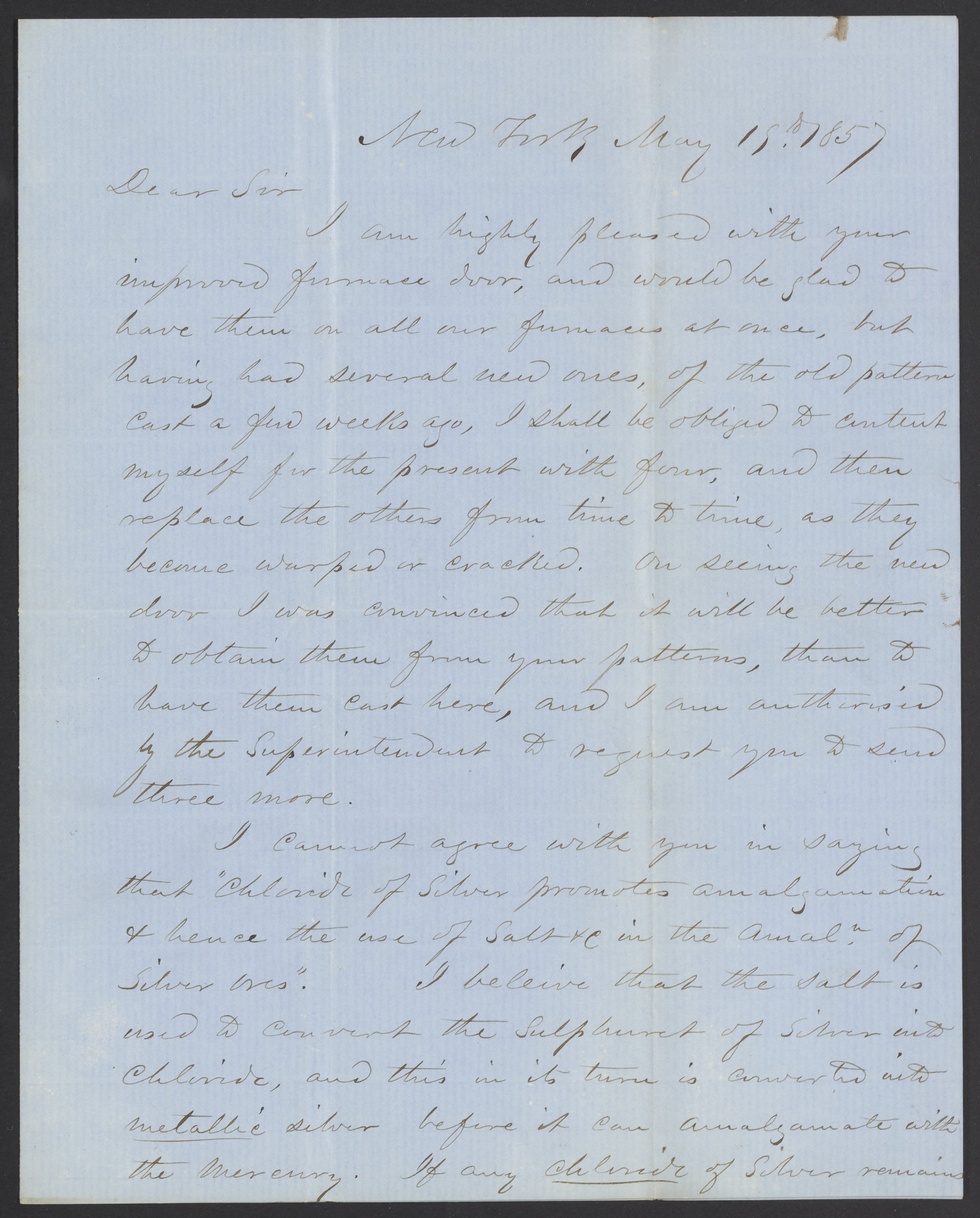 Letter from Edward N. Kent to James Curtis Booth, May 15, 1857
