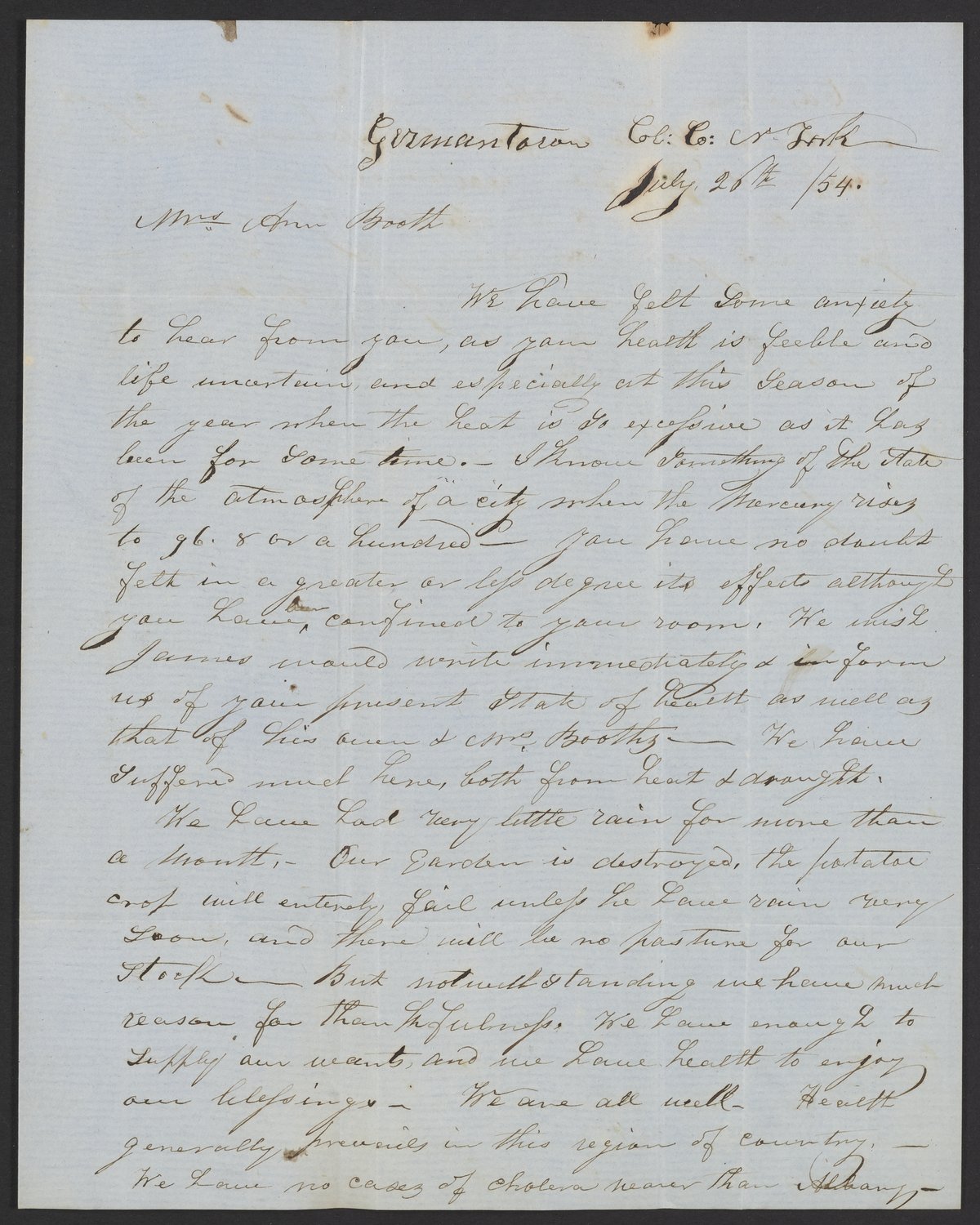 Letter from B. Hoff to Ann Booth, July 26, 1854