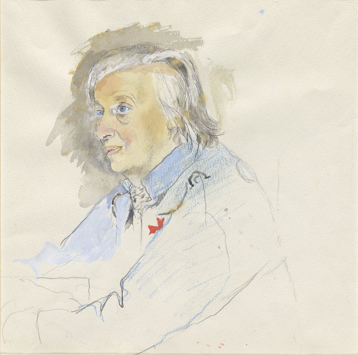 Study for a never-finished portrait of Dorothy Crowfoot Hodgkin OM FRS (1910-1994), by English artist Graham Sutherland. Hodgkin was an English biochemist who won the Nobel Prize in Chemistry in 1964 for her work in X-ray crystallography, becoming the first British woman to receive the award. Sutherland completed at least two studies (the other is in the collection of the Royal Society) in preparation for Hodgkin's portrait, but he died before the final version could be completed.