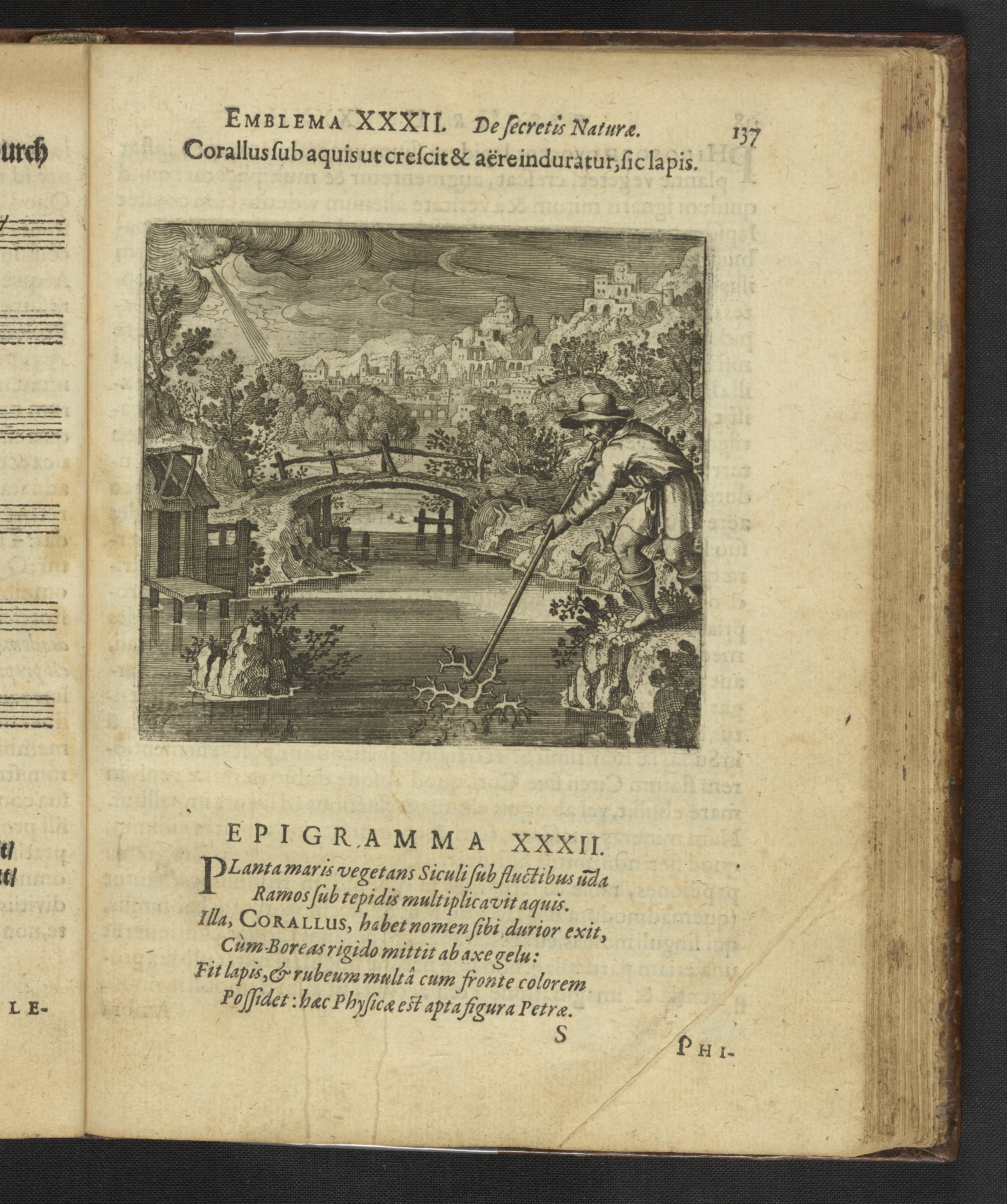 Maier, Michael. “Emblema XXXII. Corallus Sub Aquis Ut Crescit & Aëre Induratur, Sic Lapis.” In Atalanta Fugiens. Oppenheim, Germany: Johann-Theodor de Bry, 1618. https://digital.sciencehistory.org/works/zg64tm73g.