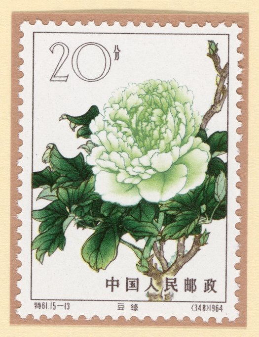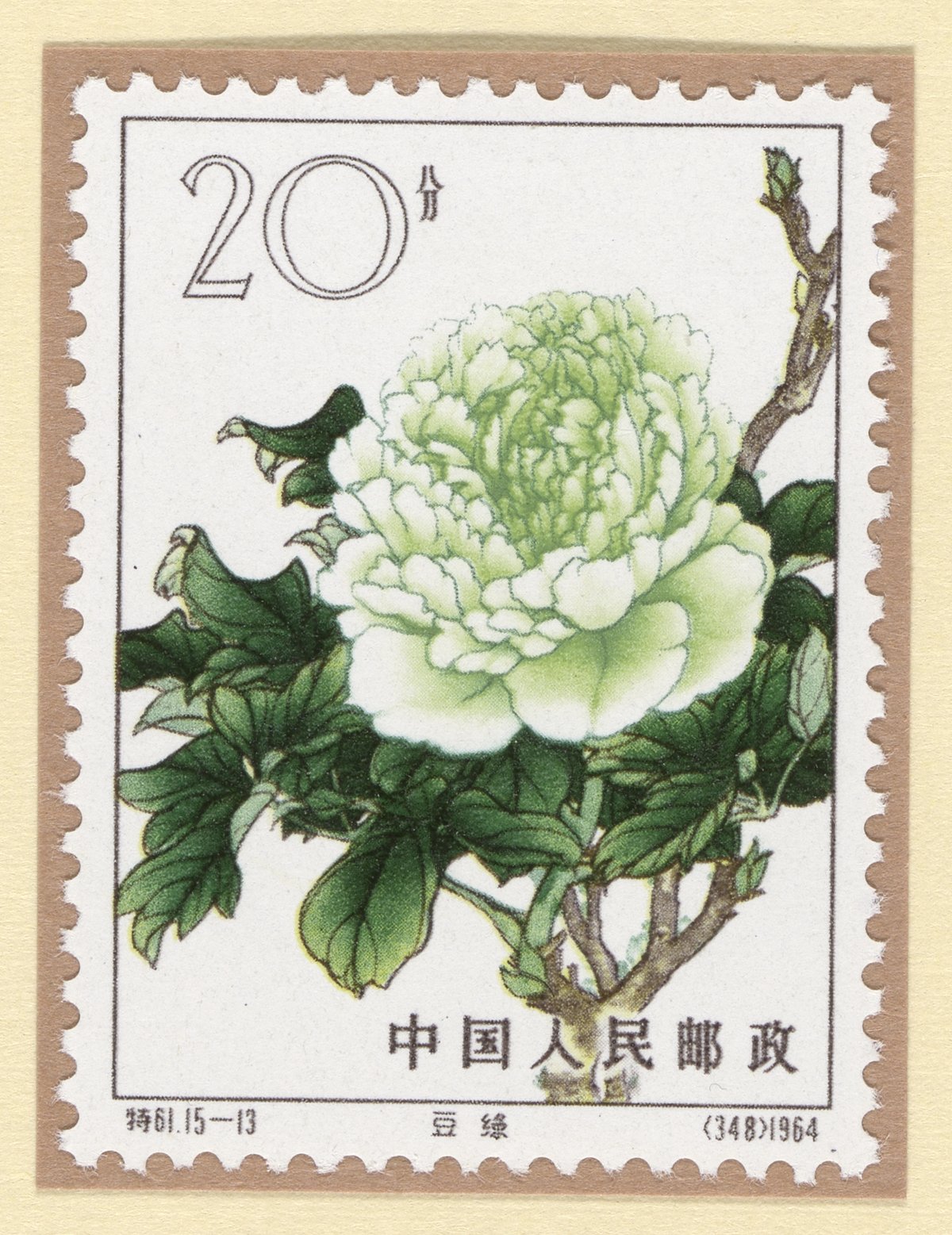 “Pea Green Peony Postage Stamp, China,” August 10, 1964. Witco Stamp Collection, Box 5. Science History Institute. Philadelphia. https://digital.sciencehistory.org/works/zgzfkw7.