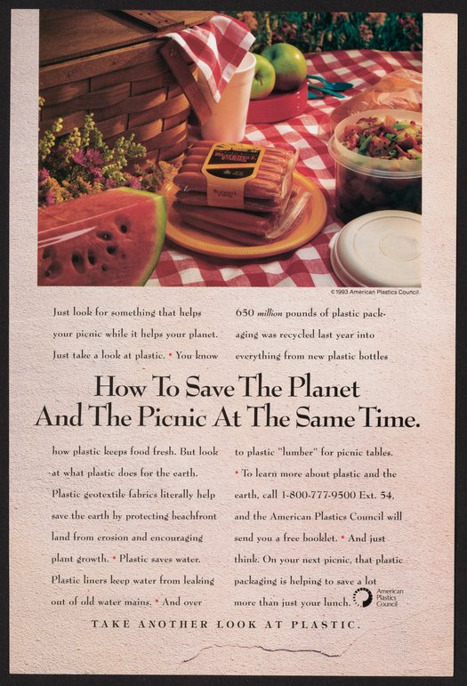 American Plastics Council. “Take Another Look At Plastic Advertisement, 1993,” 1993. Science History Institute. Philadelphia. https://digital.sciencehistory.org/works/zhug2ed.