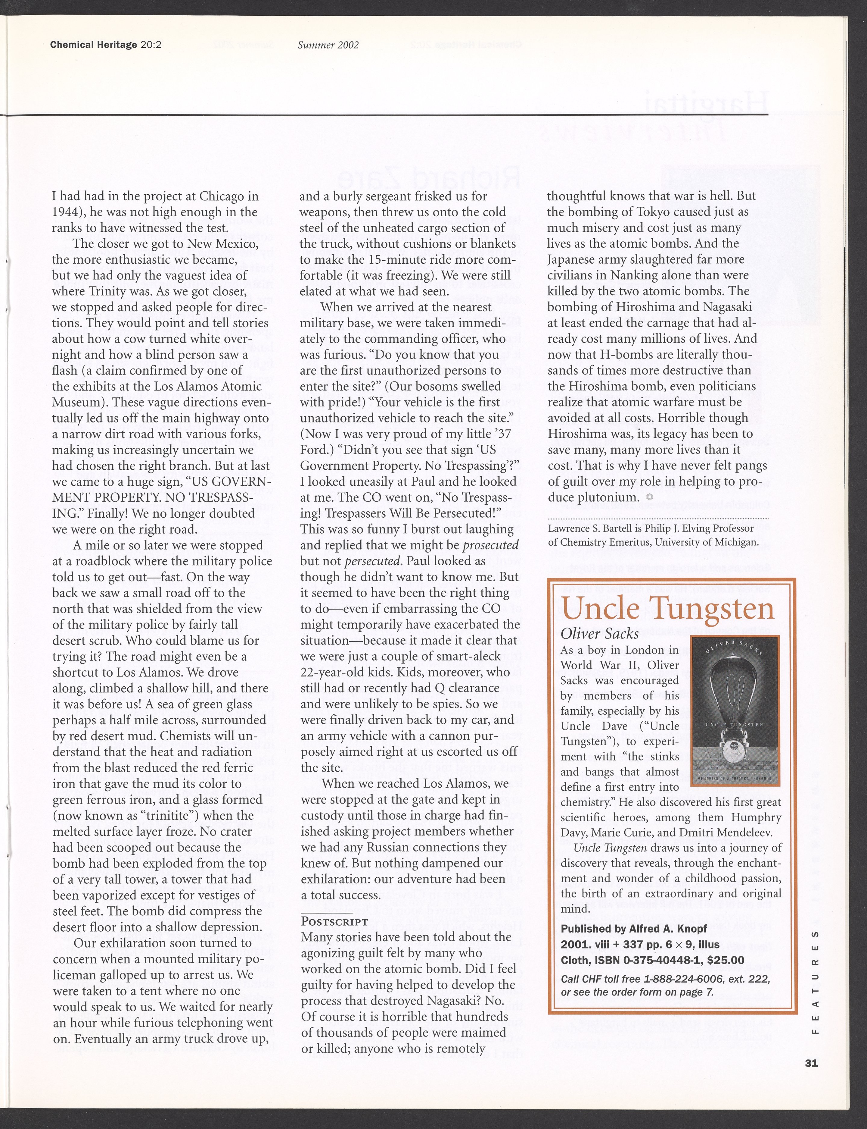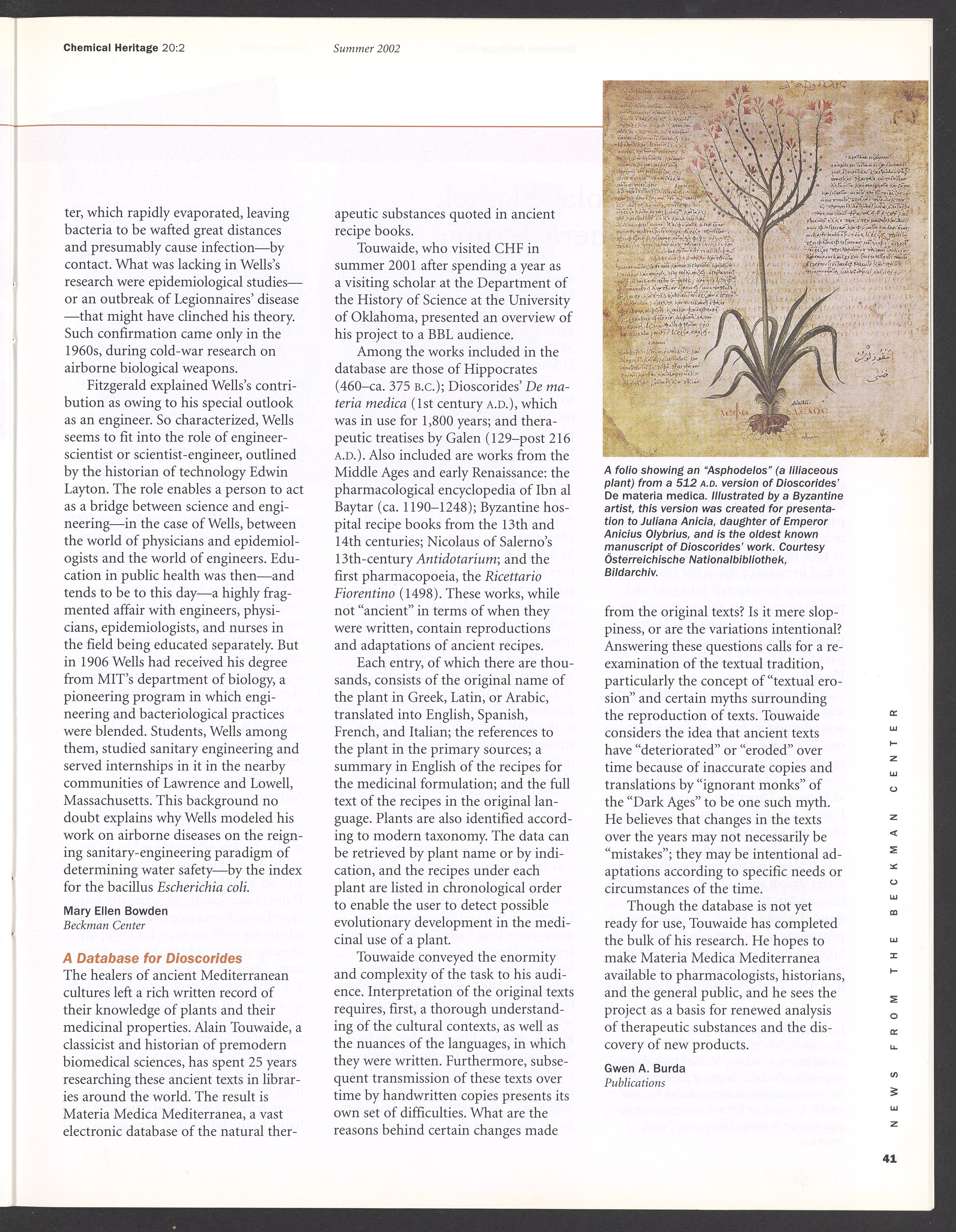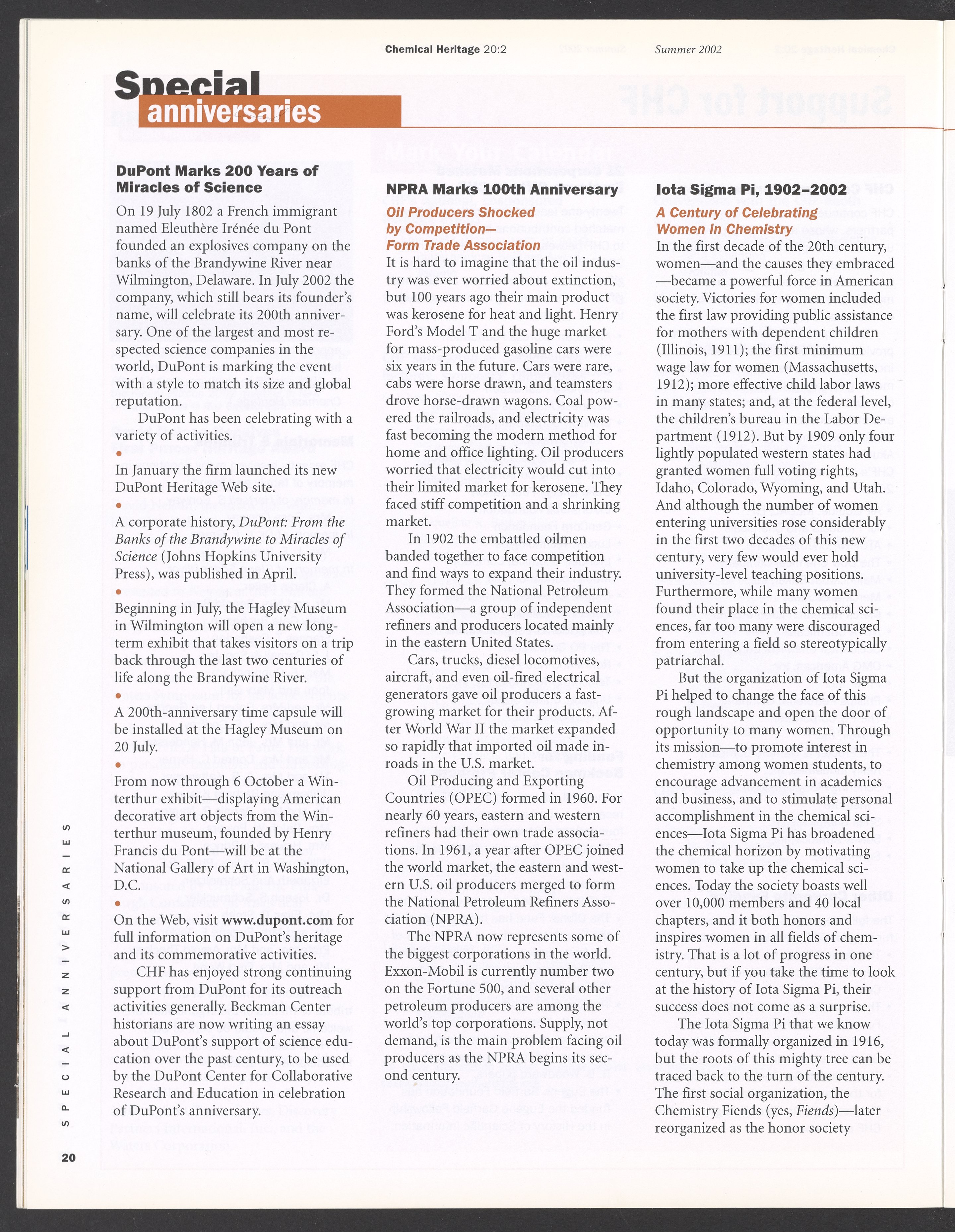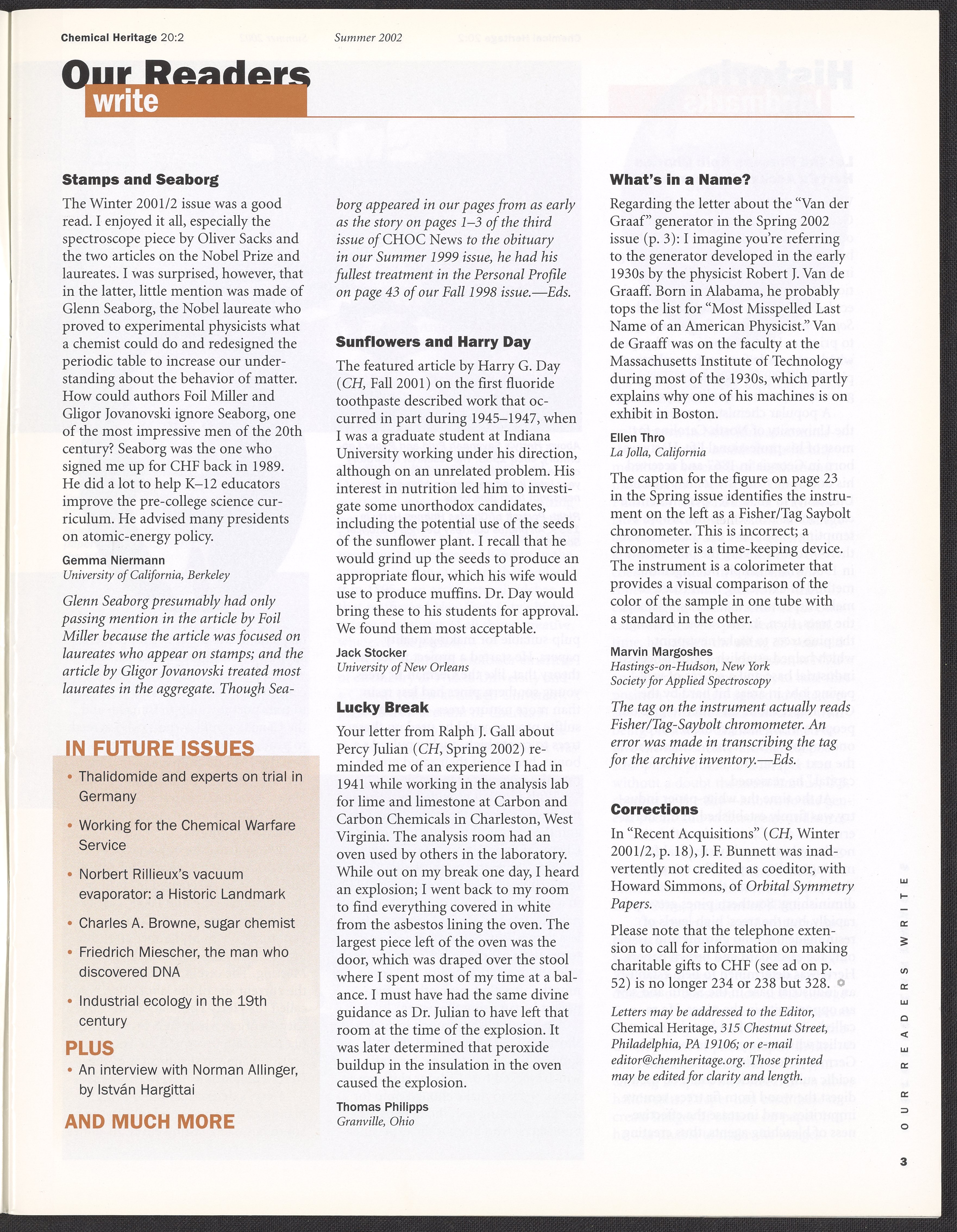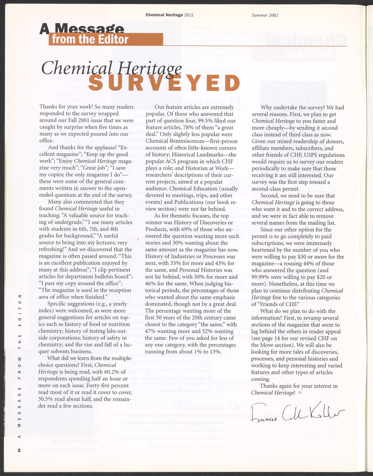 “Chemical Heritage, Volume 20 Number 2.” Philadelphia, Pennsylvania: Chemical Heritage Foundation, 2002. 099C001. Science History Institute. Philadelphia. https://digital.sciencehistory.org/works/ziecybv.