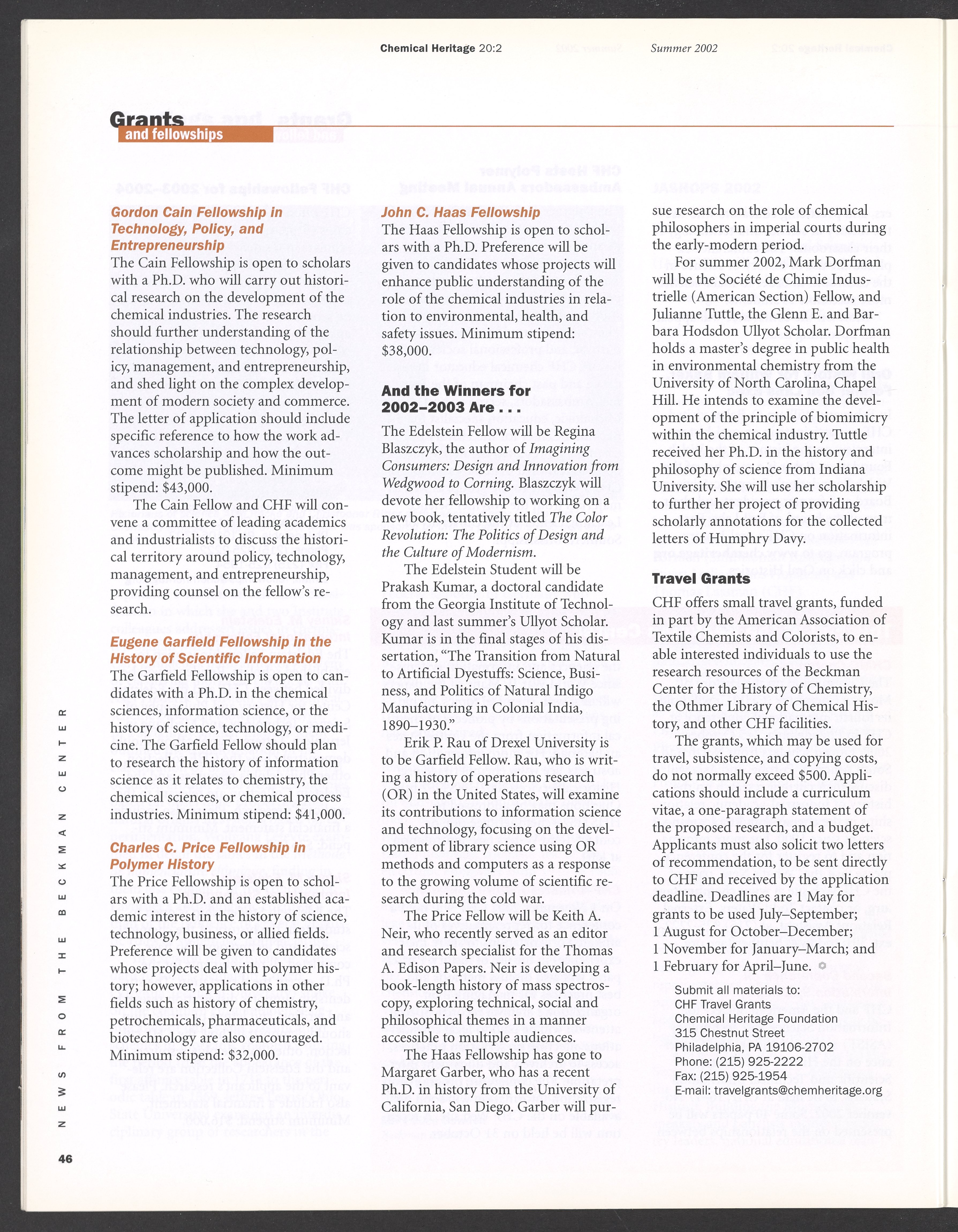 “Chemical Heritage, Volume 20 Number 2.” Philadelphia, Pennsylvania: Chemical Heritage Foundation, 2002. 099C001. Science History Institute. Philadelphia. https://digital.sciencehistory.org/works/ziecybv.