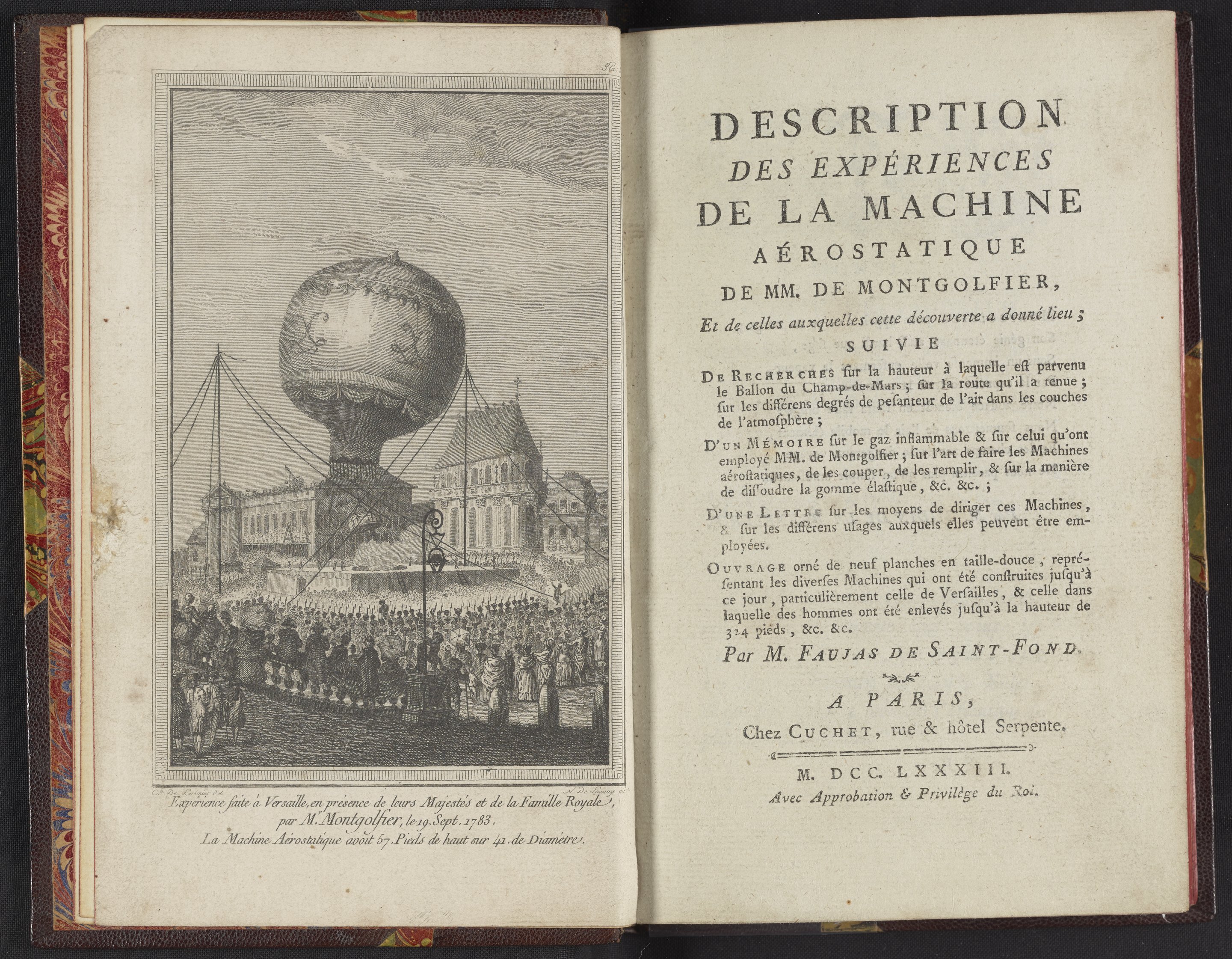 Faujas-de-St.-Fond, cit. (Barthélemy). “Frontispiece and Title Page (Plate 5) from Description Des Expériences De La Machine Aérostatique De MM. De Montgolfier [Description of the Aerostatic Machine Experiments of Mr. & Mr. Montgolfier].” In Description Des Expériences De La Machine Aérostatique De MM. De Montgolfier. Paris, France: Cuchet, 1783. https://digital.sciencehistory.org/works/zk51vg816.