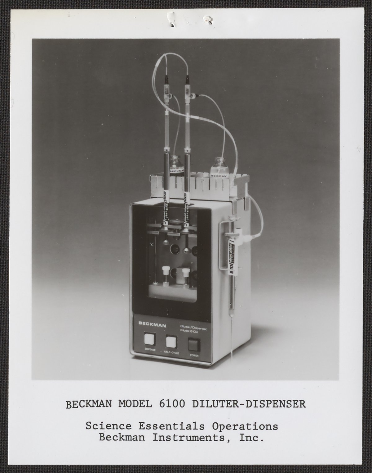 “Beckman Model 6100 Diluter-Dispenser,” circa 1979. Beckman Historical Collection, Box 84. Science History Institute. Philadelphia. https://digital.sciencehistory.org/works/zk51vh06v.