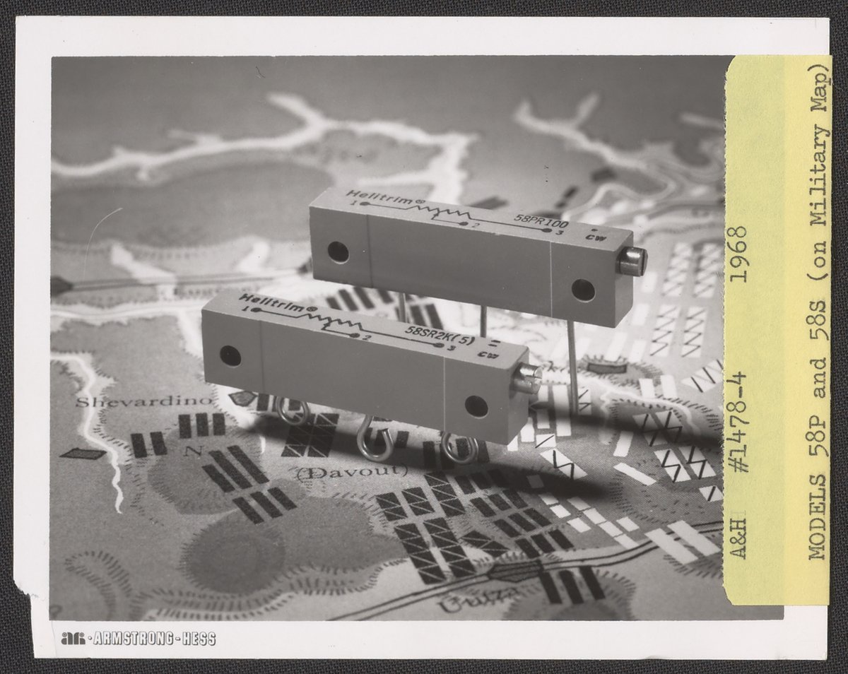 Potentiometers regulate the flow of electricity, like the volume dial on a radio. In 1940, Arnold O. Beckman was unsatisfied with dials on the market, so he designed his own helical potentiometers, or helipots, for use in his popular pH meter. The precision of this dial caught the eye of the MIT Radiation Laboratory’s secret radar project during World War II. Beckman redesigned the helipot to meet the needs of the United States military and set up a separate company, also called Helipot, to keep up with the demand for these knobs. In the 1950s, Helipot was reincorporated into Beckman Instruments as the Helipot Division and continued to make potentiometers and other electrical components for decades, those tiny dials becoming staples of the electronics manufacturing industry.