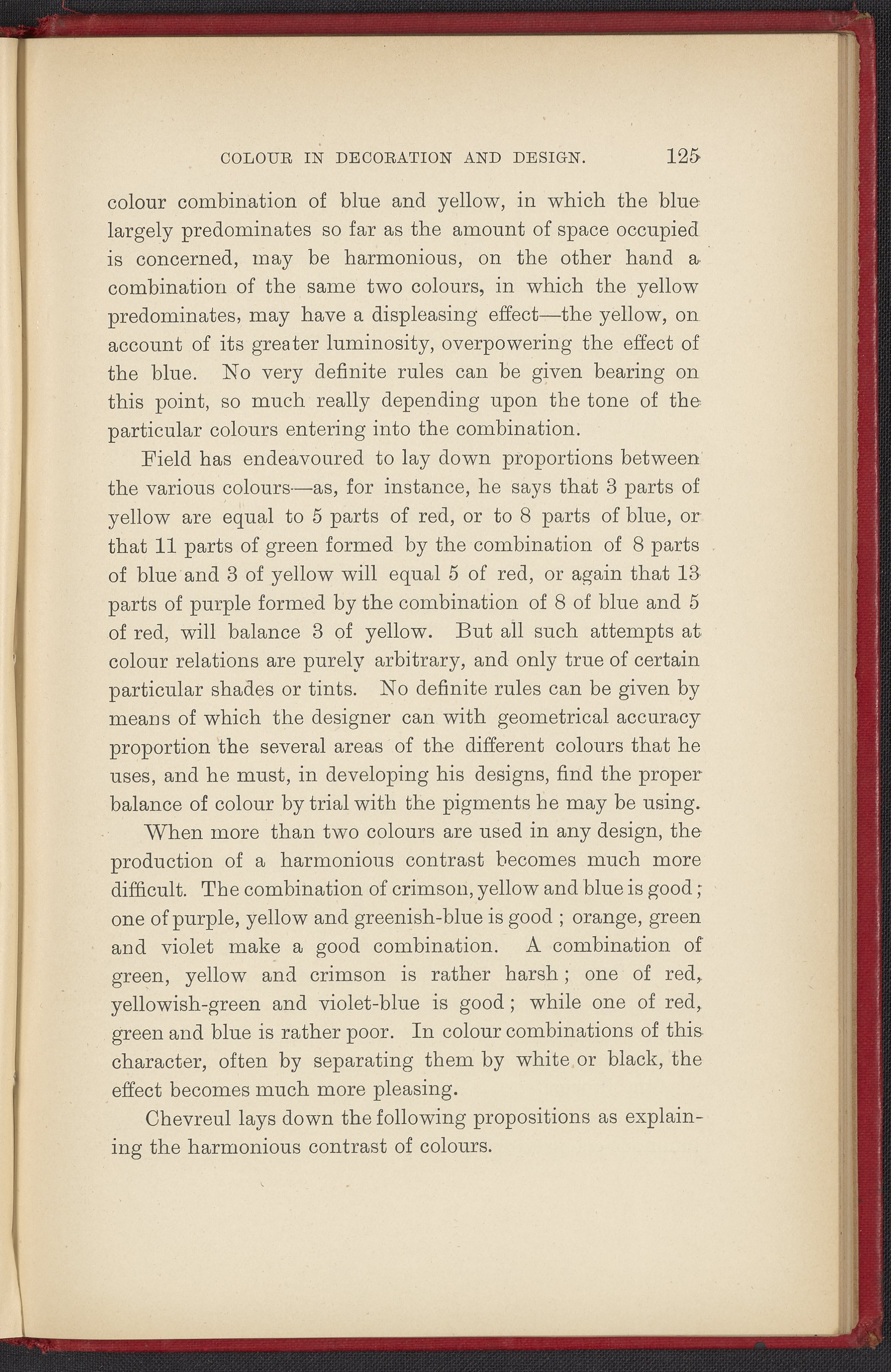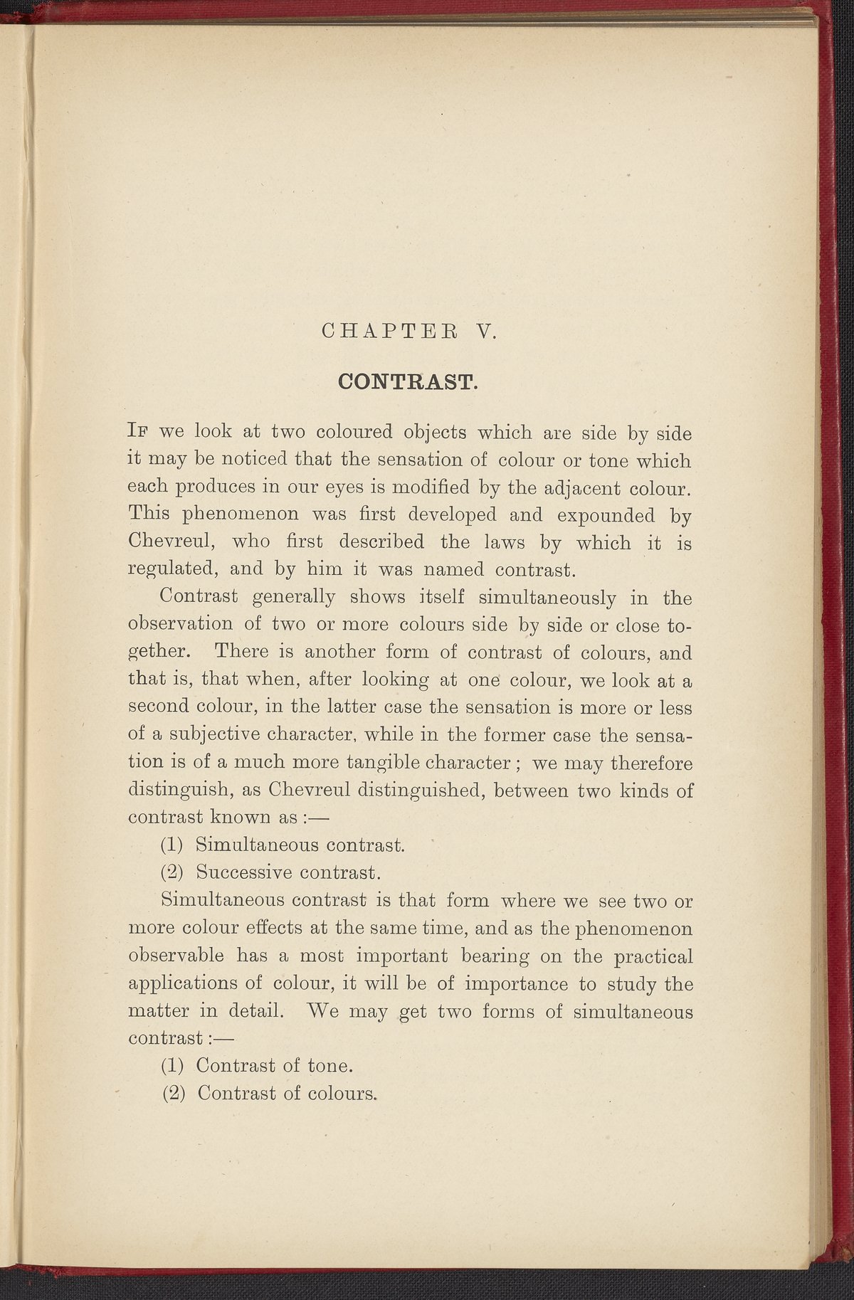Small JPG1200 x 1748px — 409 KBFull-sized JPG2537 x 3696px — 1.6 MBOriginal fileTIFF — 2537 x 3696px — 26.9 MBVolume concerning the theory of color, its production, and the phenomena which occur upon mixing colors. Intended for practical users with previous experience in color theory such as artists, painters, dyers, and calico printers. The work introduces the latest investigations in the field. Content includes topics such as the production of color; the cause of color in colored bodies; color phenomena and theories; the physiology of light; contrast; color in decoration and design; and measurement of color. Includes ten colored plates and seventy-two illustrations. Work is digitized in its entirety.