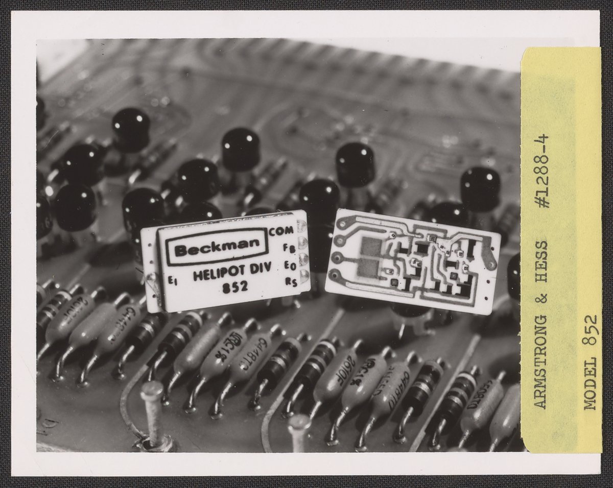 Armstrong & Hess. “Helipot Model 852 Voltage Regulators on a Printed Circuit Board,” 1950–1969. Beckman Historical Collection, Box 85. Science History Institute. Philadelphia. https://digital.sciencehistory.org/works/zs25x874j.