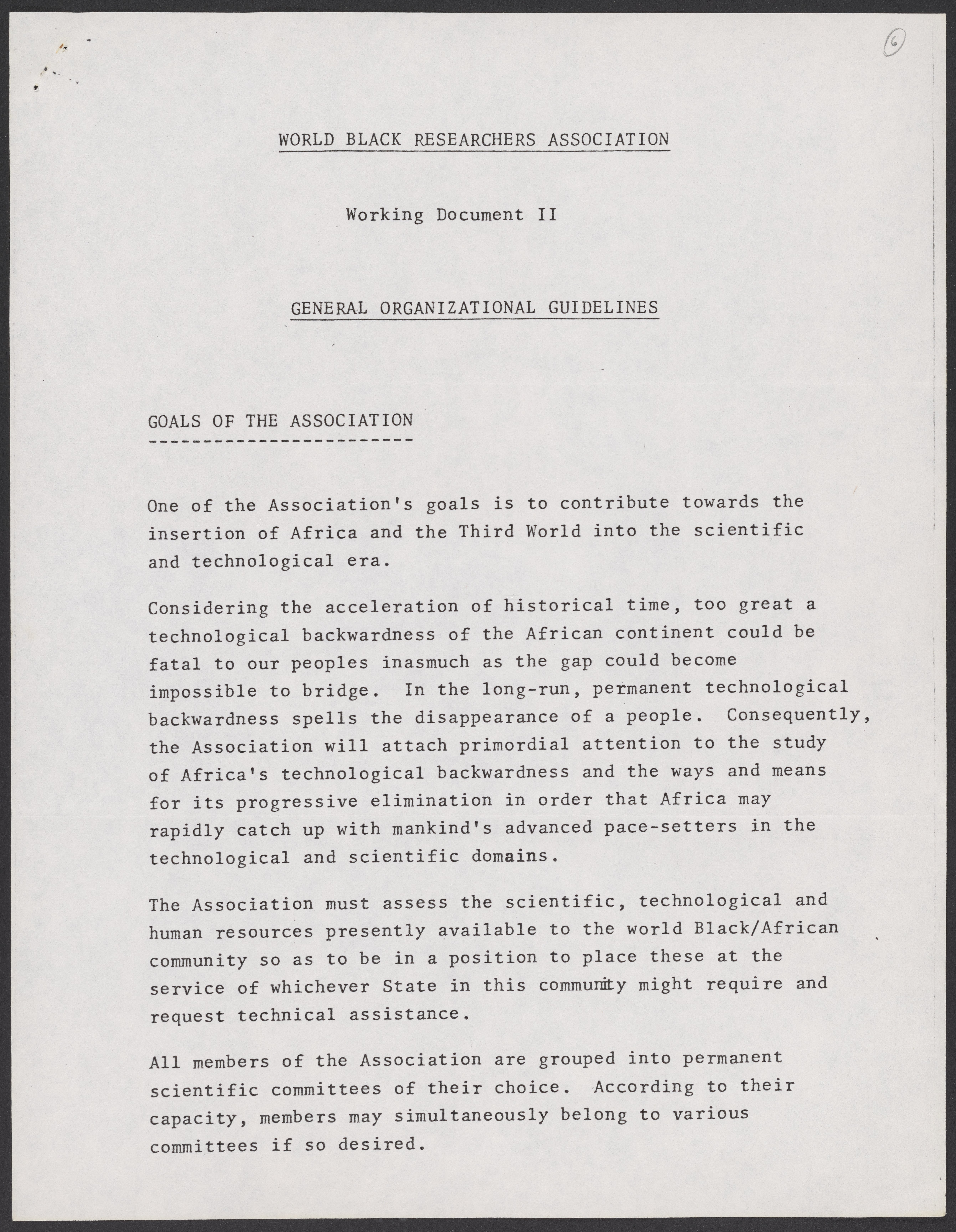 World Black Researchers Association. “General Organizational Guidelines for the World Black Researchers Association,” circa 1976. William A. Lester, Jr. Papers, Box 5, Folder 9. Science History Institute. Philadelphia. https://digital.sciencehistory.org/works/zu88imr.