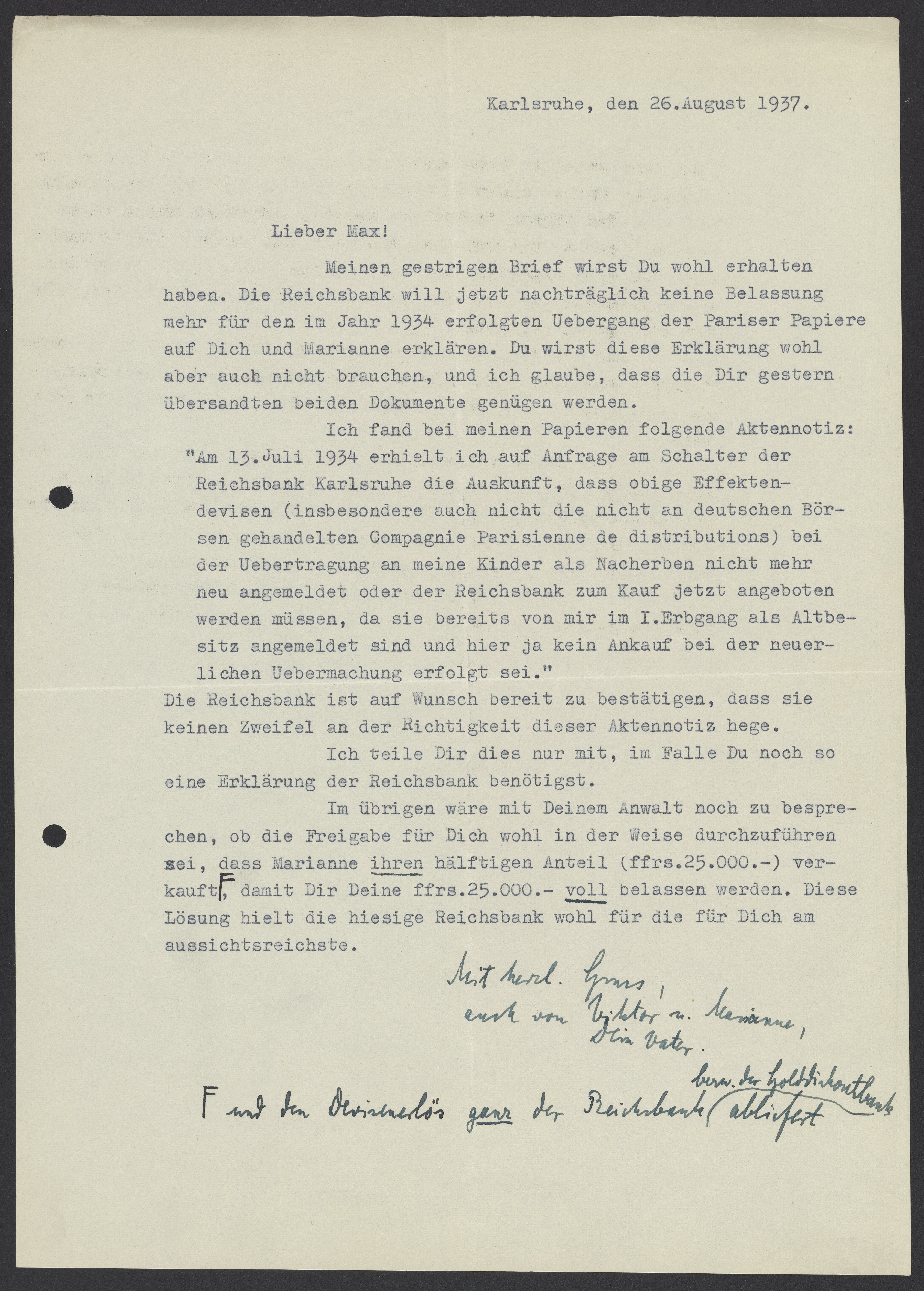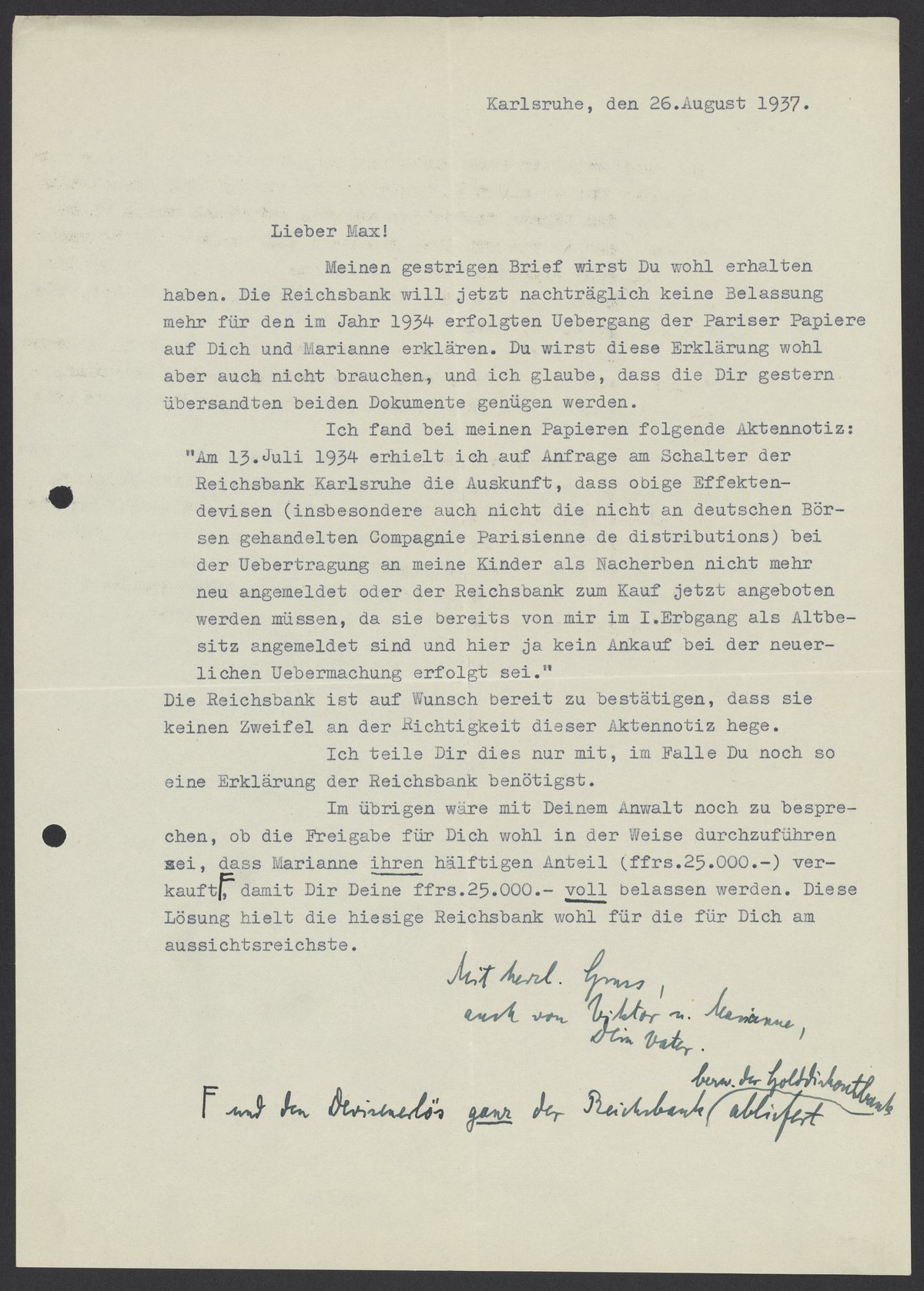 Letter from Georg Bredig to Max Bredig, August 26, 1937