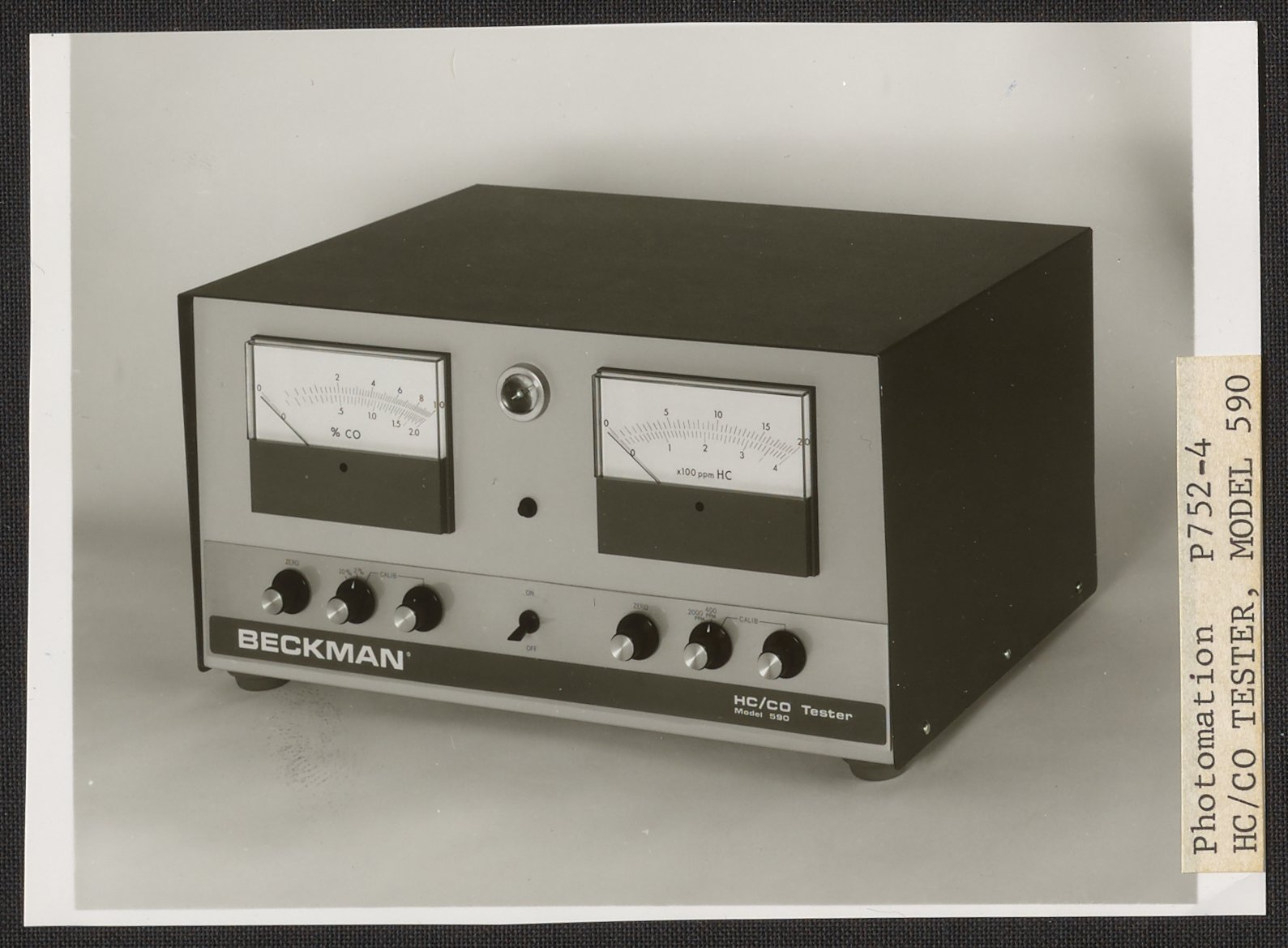 Photomation. “Beckman Model 590 HC/CO Tester,” 1973–1982. Beckman Historical Collection, Box 84. Science History Institute. Philadelphia. https://digital.sciencehistory.org/works/zw12z545b.