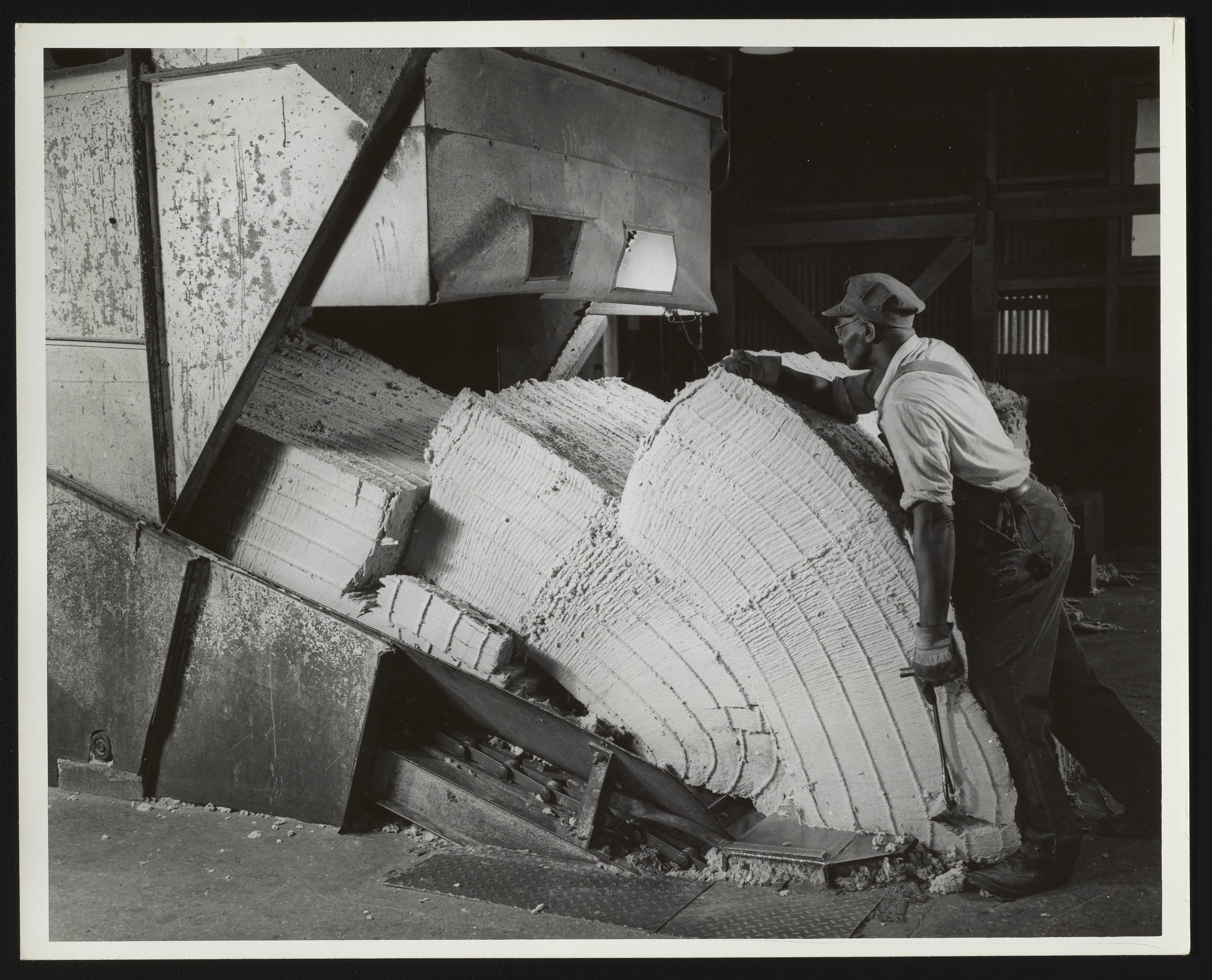 Hercules Incorporated. “Paul F. Brown Operating Bale Breaking Machine at Hercules Hopewell Plant,” 1951. Photographs from the Records & Ephemera of Hercules Incorporated, Box 1, Folder 36. Science History Institute. Philadelphia. https://digital.sciencehistory.org/works/zw12z596t.