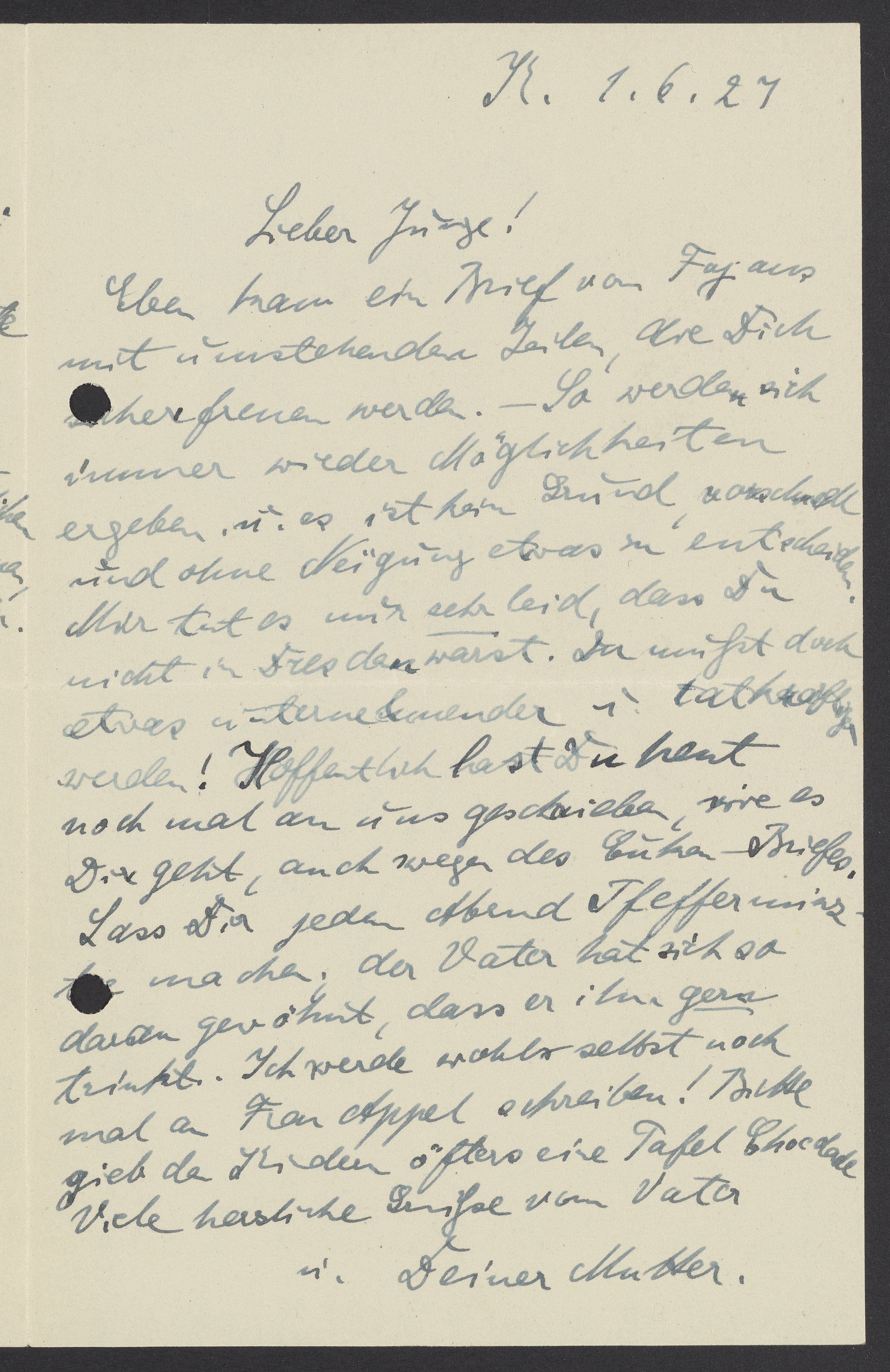 Letter from Rosa Bredig to Max Bredig, June 1, 1927